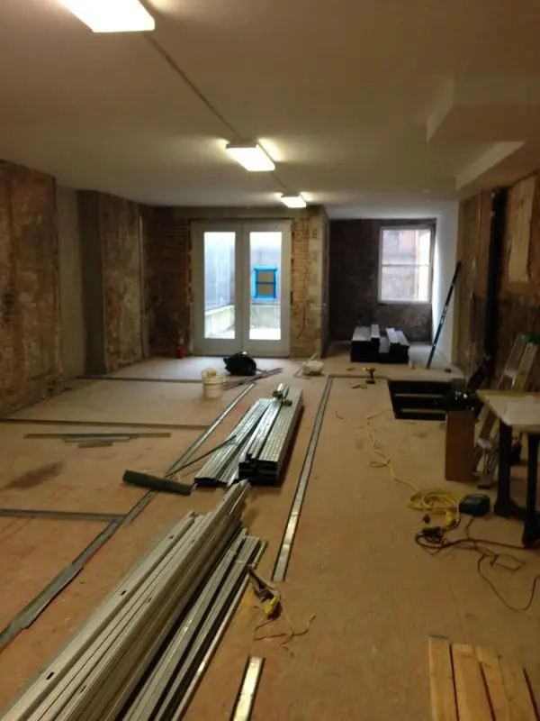 Further progress on metal tracking (view from back of first floor towards the front).