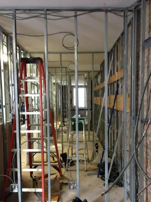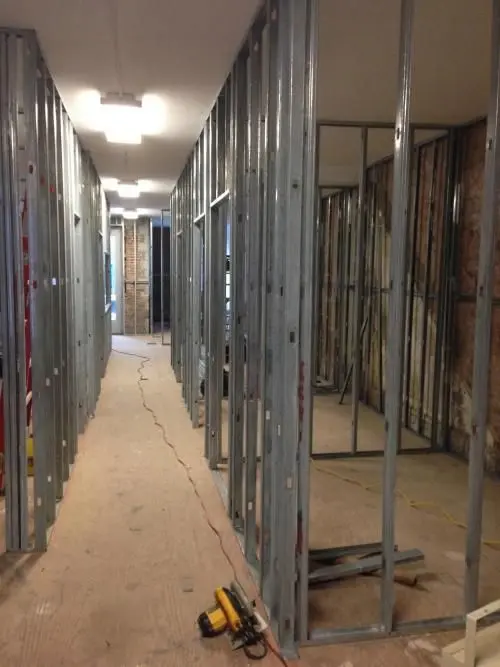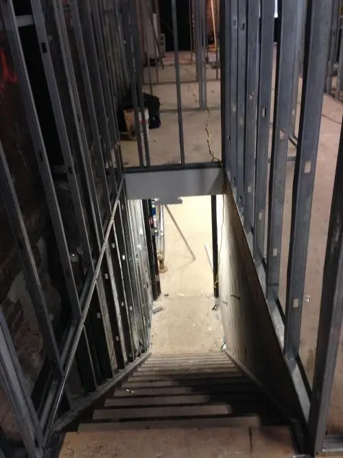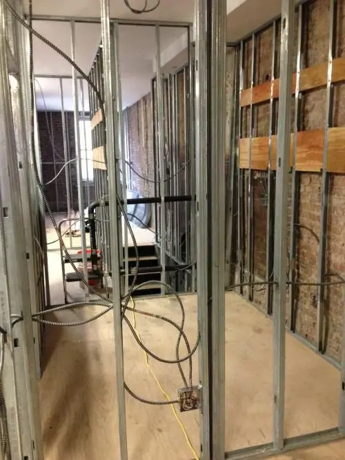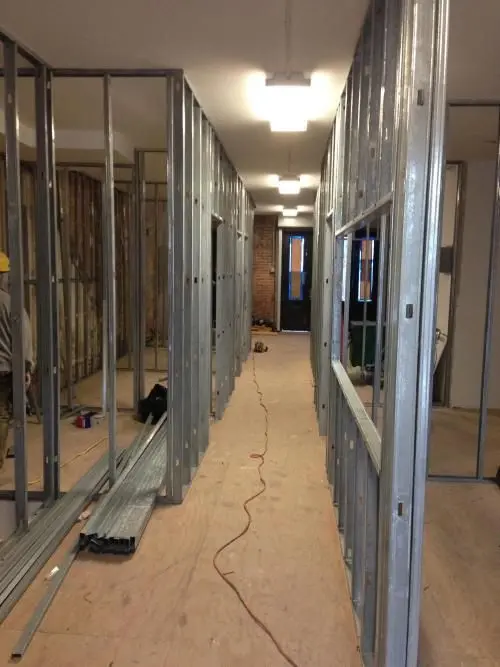 Metal track layout prior to constructing walls.