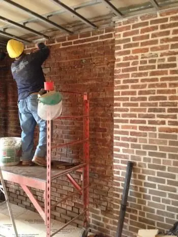 Pointing the brick wall in the waiting room.